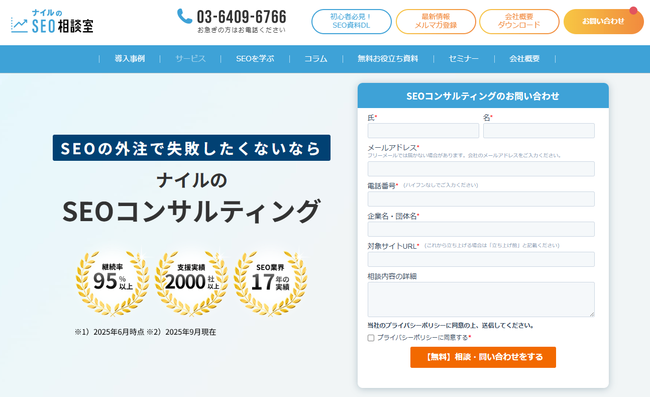 自社メディア「ナイルのSEO相談室」で蓄積した知見をもとに、最新のAI検索(LLMO)にも対応した総合的なSEO支援を提供しています。