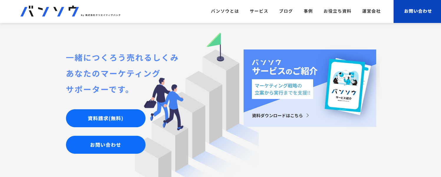 株式会社クリエイティブバンクのマーケティングサポート「バンソウ」のメディア管理人。得意分野は、SEO全般・サイト分析・オウンドメディア・コンテンツマーケティング。バンソウはクライアント様のBtoBマーケティングをサポートするサービスです。詳しい内容はこちらをご覧ください。