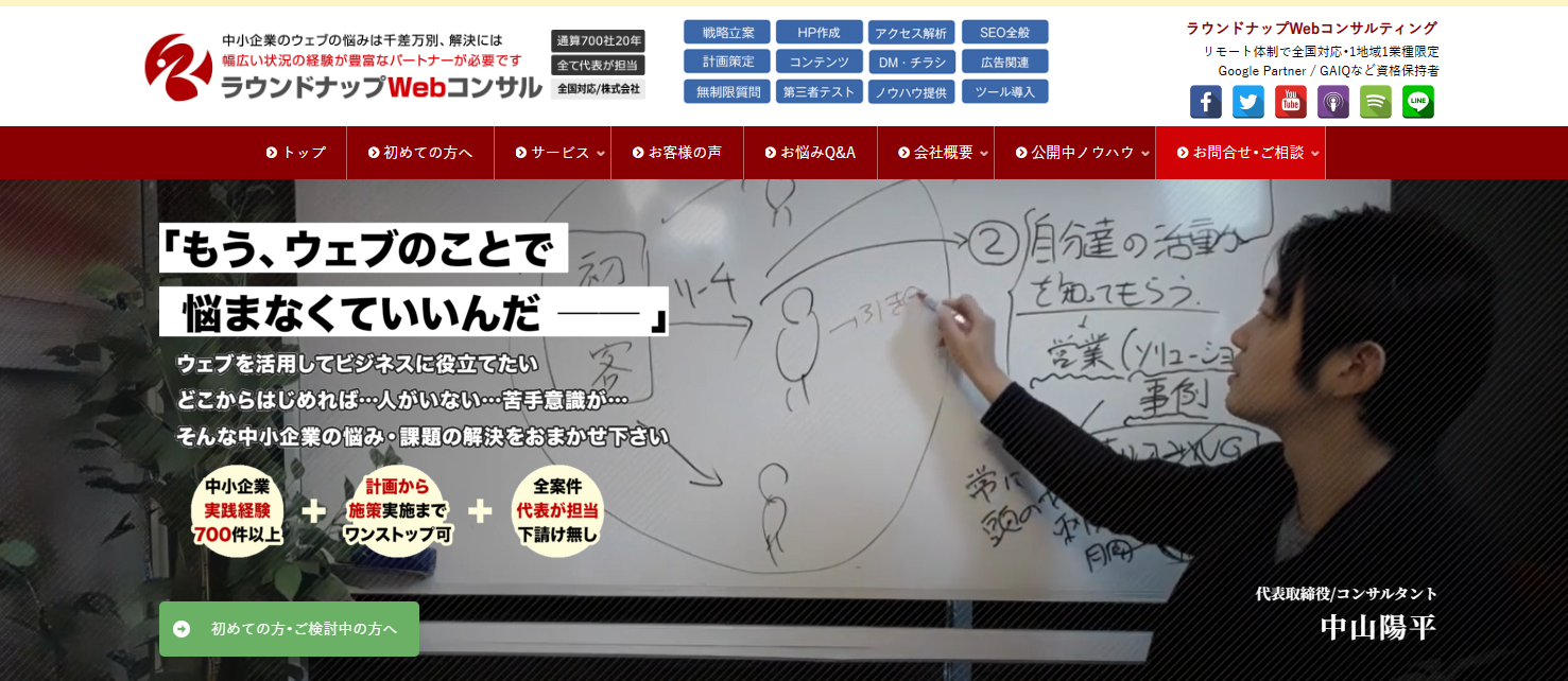 株式会社ラウンドナップは、埼玉県新座市を拠点に活動するWebコンサルティング会社です。オンラインMTGを中心とした密なサポートが特徴で、チャット相談も月額費用内で利用可能。SEO対策、HP制作、広告運用、DM施策など幅広く対応し、700社・50業種以上の企業を支援しています。
